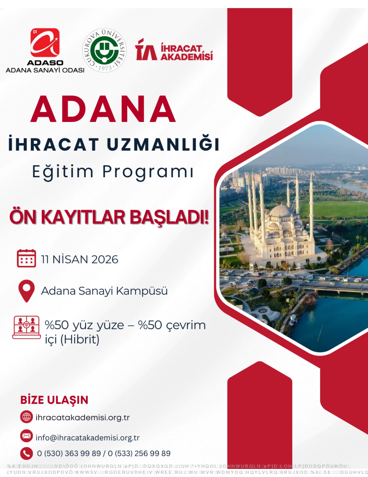 Ticaret Bakanlığı koordinasyonunda faaliyet gösteren İhracat Akademisi tarafından düzenlenen Adana İhracat Uzmanlığı Eğitim Programı, 11 Nisan – 18 Mayıs 2026 tarihleri arasında Adana Sanayi Odası ev sahipliğinde gerçekleştirilecektir.