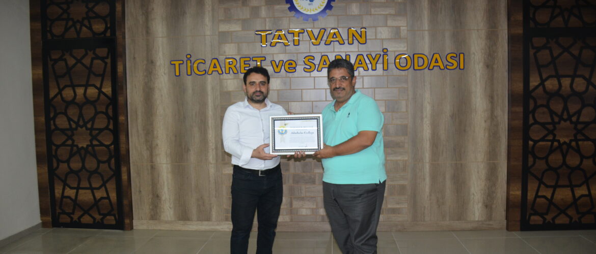 Oda Başkanımız Bilal Adabağ, yayın hayatında 33. yılı geride bırakan Tatvan Sesi Gazetesi Sorumlu Yazı İşleri Müdürü Abdulhalim Kızılkaya’ya “Teşekkür” belgesi takdiminde bulundu. Tatvan Sesi Gazetesi’ninn 33. Kuruluş yıl dönümü vesilesiyle Sorumlu Yazı İşleri Müdürü Abdulhalim Kızılkaya’yı makamında ağırlayan Oda Başkanımız Bilal Adabağ, “Gazetenizin yayın hayatında 33. yılını geride bırakmasını en içten dileklerimle kutluyorum. Bu […]