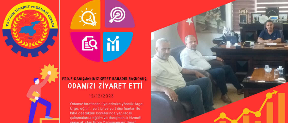Odamız tarafından üyelerimize yönelik Arge, Ürge, eğitim, yurt içi ve yurt dışı fuarları ile hibe destekleri konularında yapılacak çalışmalarda eğitim ve danışmanlık hizmeti sunacak olan Proje Danışmanımız Şeref Bahadır Başkonuş, odamızı ziyaret etti. Ziyaret kapsamında oda Başkanımız Bilal Adabağ ile bir araya gelen Başkonuş, süreçle ilgili bilgi alışverişi ve istişarelerde bulundu.