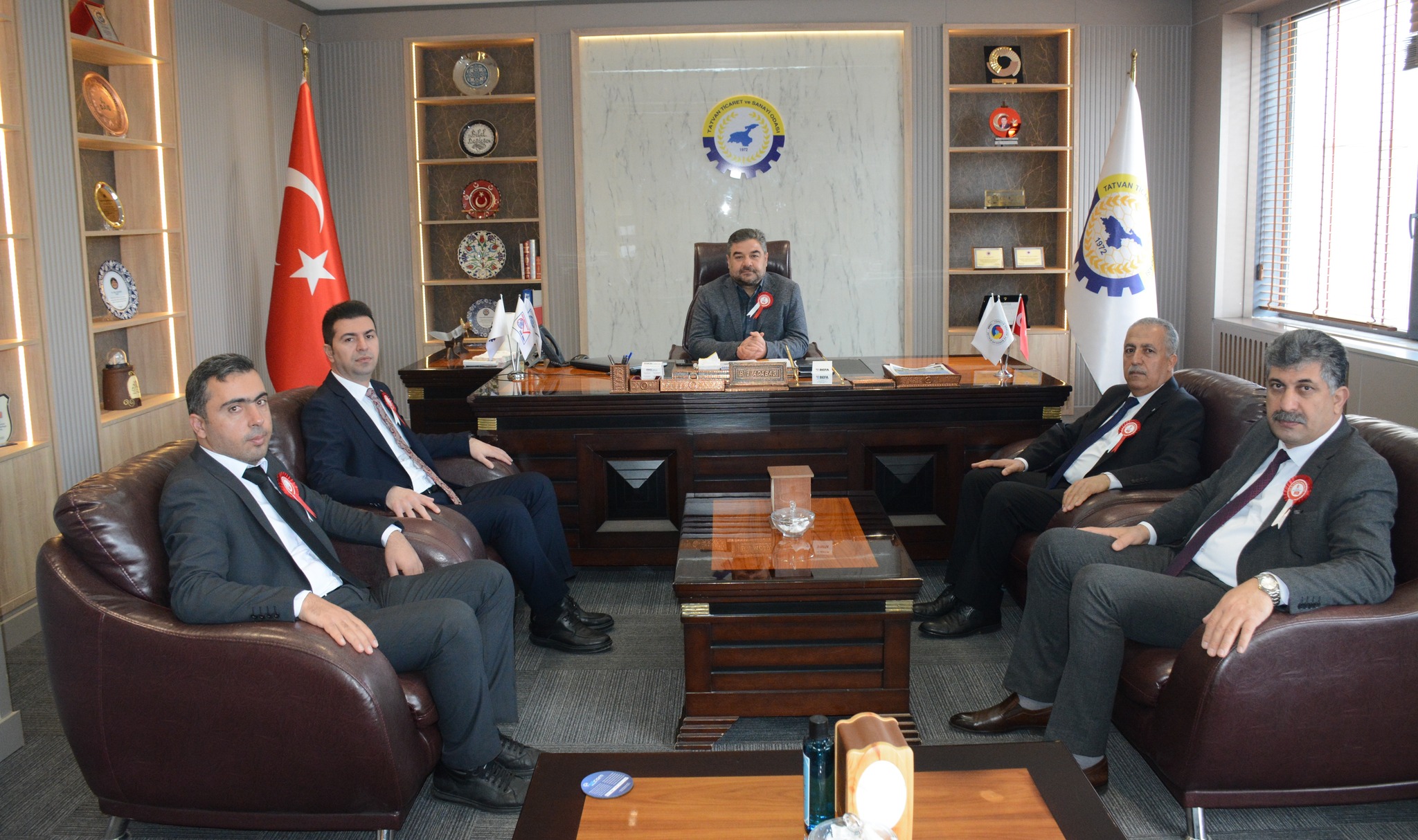 Bitlis Defterdarı Ozan Aydın, Vergi Haftası münasebetiyle Gelir Yönetimi ve Denetimi Müdürü Ayetullah Gencer, Tatvan Vergi Dairesi Müdürü Muzaffer Bayat ve beraberindeki heyetle birlikte odamızı ziyaret etti.