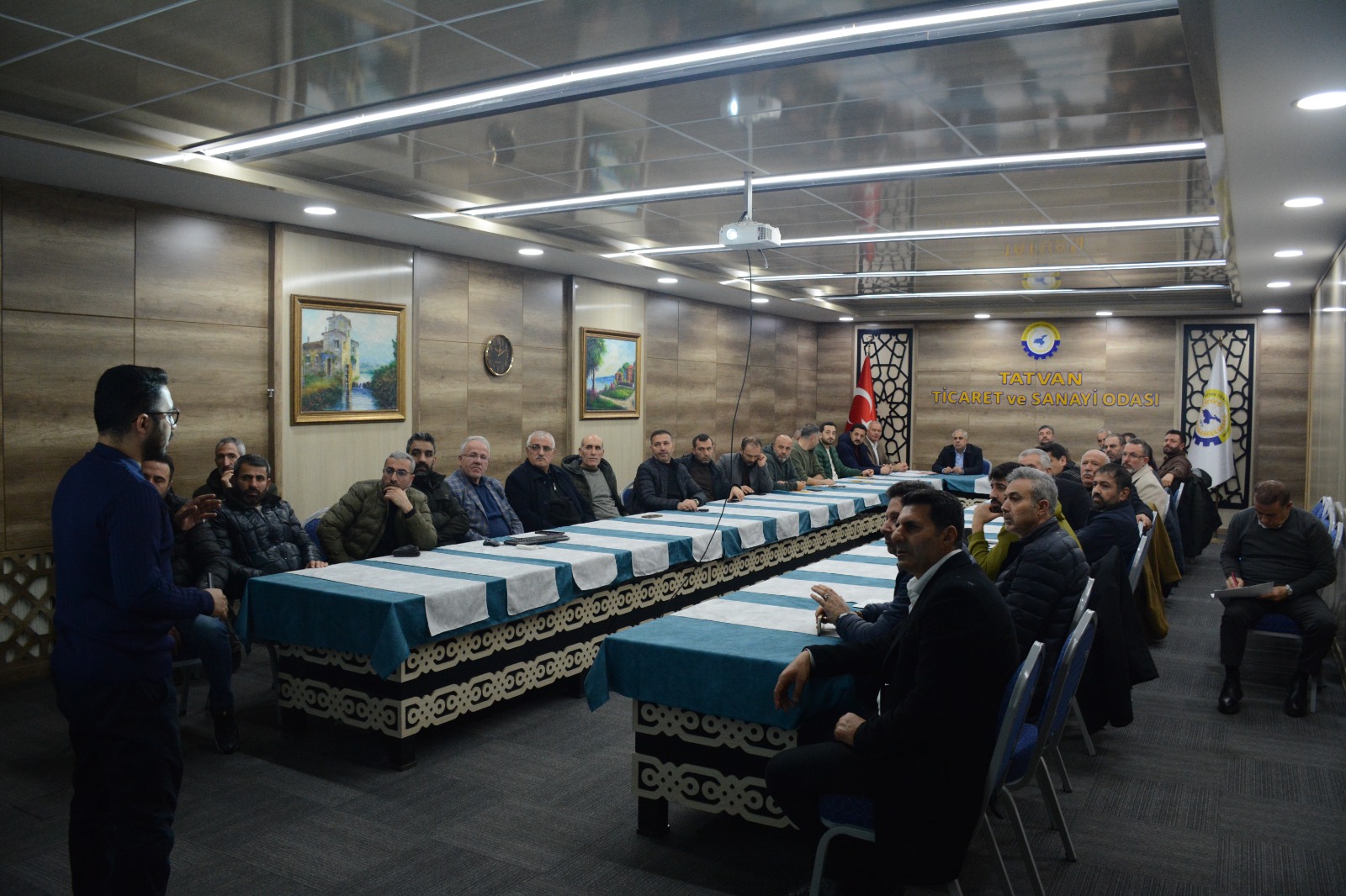 Odamız Meclis toplantı salonunda gerçekleştirilen seminere; Odamız Yönetim Kurulu Başkan Yardımcısı Yılmaz Lebit, Meclis Başkan Yardımcısı Ecevit Özkan, Meclis Üyeleri, Tatvan Esnaf ve Sanatkârlar Odası Başkanı Hasan Sönmez, Akademik Danışmanımız Prof. Dr. Zeki Uçar ve Öğretim Görevlisi Muhammed Enes İlgazi katılım sağladı.